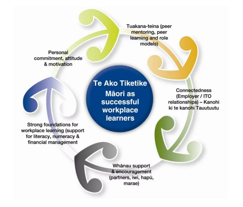 Ākonga are at the centre of everything that they do. This model of Māori value-based relationships plays a crucial role in Māori learner and trainer outcomes. Tuakana/teina systems, where learners have a role model and mentor to guide them, impacts the learner outcomes substantially.